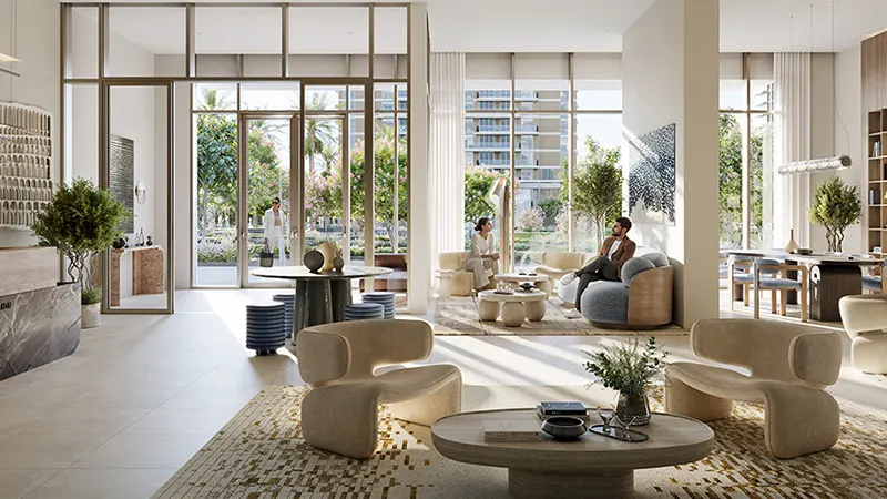 picturesque outdoors, presenting awe-inspiring views of the surrounding landscapes. The living spaces are laced with modern bathrooms, spacious closets and panoramic views, providing a harmonious blend of style and luxury. Every details within the façade is designed to create stylish and functional living spaces offering a sophisticated taste of its modern residents. With best in class thoughtfully designed leisure amenities within the waterfront environment catering to both body and soul. The façade features yoga zones, multipurpose rooms, as well dedicated areas for meditation. The fitness centre as well as the pool areas are designed to offer leisure and stunning views. For families alike, it offers dedicated kids play areas and kids pool, lush green spaces, jogging and walking tracks, all crafted within its waterfront environment to interact with nature. Key Highlights: Diverse range of 1, 2, and 3-bedroom waterfront apartments. Seamless connectivity with a four-minute walk to the metro. Prime location at the Dubai Creek Harbour with swift connectivity. Proximity to waterfront dining, shopping, and recreational options. Sleek, modern architecture with expansive windows and private balconies. Luxurious interiors featuring high-quality materials and finishes. Family-friendly environment with dedicated kids' play area and kids' pool. Comprehensive range of amenities, including a fitness center, yoga room, and pool area. Sustainable living practices with water conservation systems and energy-efficient lighting. Strong sense of community fostered by versatile multipurpose rooms and open spaces.