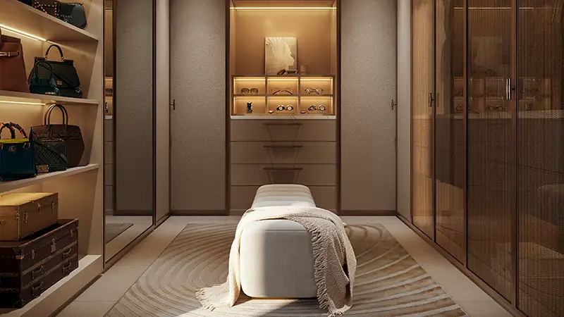 community, this luxury development is based on advanced concept of modern homes that will provide a perfect ambience for both families and individuals to live. The façade features spacious interiors and a range of well integrated amenities that brings a luxurious, comfortable and sophisticated lifestyle. The Grand is an exquisite collaboration between Address Hotels + Resorts and Nshama , showcasing exclusivity by offering limited 80 residences that provide privacy and superior refinements to serve the requirements of upper-class customers who seek absolute perfection. The premium living residences are as spacious as they are meticulously designed to make the most efficient use of space and offer a large layout with high ceilings, large windows that bring natural light inside, and a lot more. The aesthetic appeal is bolstered with stylish porcelain floors and fully equipped kitchens as well as built in wardrobes that all work in synergy to produce a beautiful blend of form and function. Not just offer beautiful views of the lush green surroundings, these