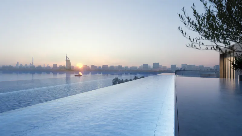 and the seascape. These exclusive class beach residences are one-of-a-kind residential community that promises to offer a fusion of luxury and serenity that is unmatched anywhere else in the world. The development is situated on the eastern crescent of the iconic Palm Jumeirah, the world's largest man-made island. This prestigious location offers residents unparalleled access to a host of world-class amenities and attractions, including beaches, shopping malls, restaurants, and nightlife. Designed by the legendary architect Tadao Ando, it is a testament to the finest of design and craftsmanship. The project features a unique blend of traditional Japanese design principles and modern, minimalist aesthetics. The
