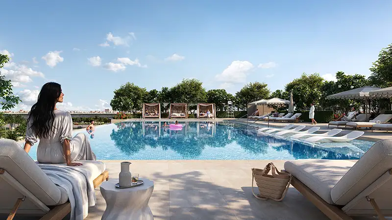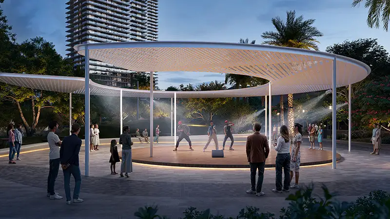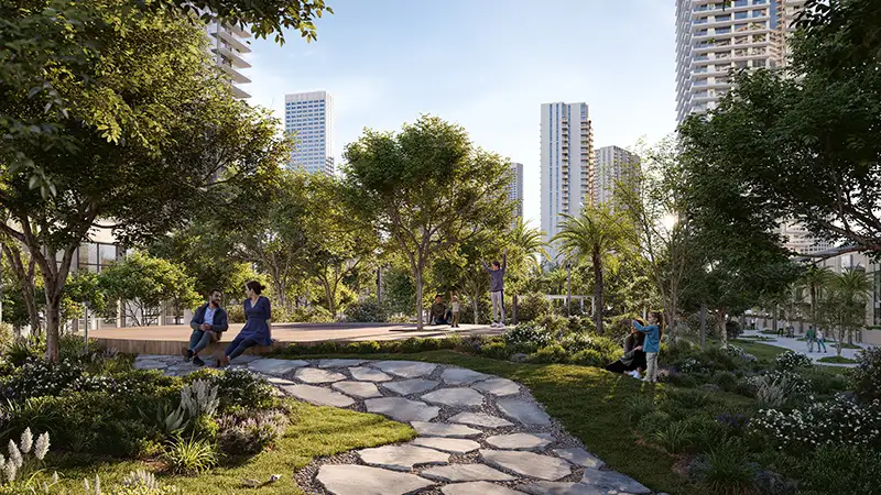 calm sense of serene lifestyle. The architecture of all dwellings is designed to be open, fluid and maximize the interaction of a social realm and an individualized contemplation. The furniture, fixtures and every other detail have been carefully chosen to enhance the experience of the occupant and also to keep a base of comfort. The dominant ideology is put forward with a holistic orientation to urban life, where amenity rich urban retreat comes with global vision. Built according to the concept of a holistic lifestyle, the façade presents an exclusive outward assortment of health and recreational facilities that suits the physical, mental, and social wellness of the occupants. Find your comfort in solitary yoga zones under the shade of trees or begin your morning on a running circle that will pass classical gardens. They are multi-sport courts and sports field, which is social venue, actually. And at the end of a day of work, relax in shimmering swimming pools, or allow the children to have a go at the colourful playgrounds and children splash zone. Key Highlights: Offers 1 to 3-bedroom apartments and expansive 3-bedroom townhouses, a masterpiece of spatial design, with airy interiors, natural light, and elegant earthy finishes. Experience a rare synthesis of waterfront serenity and architectural brilliance, creating a refined residential haven with panoramic vistas of Dubai Creek and City Skyline. Situated in the prestigious Dubai Creek Harbour, connecting Downtown Dubai, Ras Al Khor Wildlife Sanctuary, and the upcoming Blue Line Metro. The project is framed by the lush landscaping of Green Gate, a serene community spine featuring tranquil parks, shaded lawns, BBQ zones, and walking trails. Amenity offering extends beyond leisure, delivering wellness-focused spaces like yoga pods, fitness zones, and multi-sport courts that encourage holistic lifestyle. Children thrive in safe, vibrant world of splash zones, interactive playgrounds, skate parks, and open lawns, all crafted to spark imagination and joyful outdoor play. Residents enjoy a lifestyle enhanced by vibrant promenade retail, café terraces, and social hubs—fostering a community atmosphere where convenience meets luxury.