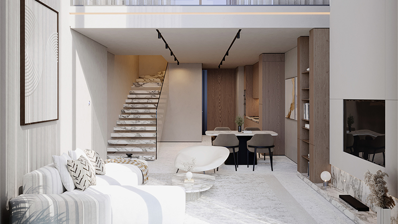 living spaces. Inside the luxurious design residences, the premium kitchens are arranged with granite countertops, under-mounted sinks, and energy-efficient lighting system. The premium design bedrooms feature Swiss wood flooring, smart locks, and custom designed wardrobes. The amenities are designed to cater to the diverse needs of its residents. Multiple temperature-controlled swimming pools, including a kids' pool, a state-of-the-art gym, and a resort-style courtyard provide ample opportunities for recreation and relaxation. The coffee lounge, equipped with a top brewer by Scanomat, offers ethically sourced beverages on the house, adding to the luxurious lifestyle. The development is also pet-friendly, ensuring that every member of the family feels at home. Covered car parking, with one space per unit, adds convenience, while the contemporary and sustainable architecture enhances the overall living experience. Key Highlights: Offers 251 meticulously designed residences, including designer suites, duplexes, and exclusive sky villas, ensuring a variety of living options. Situated in Jumeirah Village Circle (JVC), offers easy access to major highways, shopping centers, schools, and healthcare facilities, Select units come with private pools, offering an extra layer of luxury and exclusivity, along with custom-designed wardrobes and Swiss wood flooring in bedrooms. Residents can enjoy multiple temperature-controlled swimming pools, a state-of-the-art gym, a resort-style courtyard, and a pet-friendly environment. Features AI-enabled Nest thermostats and HVAC systems, energy-efficient LED lighting, and sustainable water flush tanks by Geberit, significantly reducing its carbon footprint. Advanced smart home features include smart doorbells, intercom systems, and Type C sockets, ensuring modern connectivity and convenience for residents.