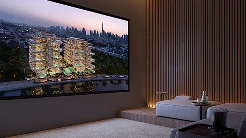 remarkable sights of the canal, Safa Park, Burj Khalifa, and the Burj Al Arab. PMR Property has partnered with global architectural brand Foster + Partners to deliver every aspect of the development to the highest levels, with the artistic ability of Emirati artist Mattar Bin Lahej giving a unique visual identity to the façade of the building, taking art and architecture even closer together. His work is always definably impactful, as seen recently in the Dubai Museum of the Future. The Rings would be construed as two separate boutique buildings with six exclusive mansions in each. Their luxurious architectural finery is coupled with lavish living spaces, personal elevators, swimming pools, and lush garden terraces. Stunning floor-to-ceiling windows flood the interiors with natural light while framing the city's most sought-after views. It also comes with private gyms, cinemas, and entertainment areas. From the main entrance, the expansive double-height lobby is perfectly complemented by quiet reflective pools, instilling a warm feeling as soon as you step into it. Parking is underground with personal pods, connected to personal car showrooms and residential lifts to make the car-to-door traffic smooth and private. The location of this development is prime and in high demand due to its proximity to the Four Seasons Residences. The neighborhood, anchored to Al Wasl Road, is a dynamic haven for world-class dining, trendy cafes,