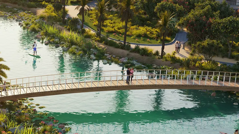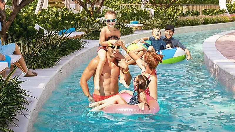 beauty, combining an elegant lifestyle. Discover the charm of the urban oasis promising a living experience that is infused with the vibrancy, sophistication and tranquility of blooming urban retreats. The strategic location at Damac Hills 2 offers unparalleled connectivity to Dubai’s vibrant city centres, ensuring easy reach to key famous destinations. The next-door access to the four major roadways ensures a swift and convenient commute, whereas Al Quadra Road provides the quickest access. The locality offers a perfect balance of a serene, nature-centric environment with the bustling convenience of city lifestyle, making this an ideal opportunity. Embrace a lifestyle like no other, where living in a community like this offers countless experiences and leisure-designed family-friendly living. Embrace the new way of living, where everyone is invited to enjoy the exciting and adventurous lifestyle. The premium class residences are adorned with high-end interiors with natural hues and refined touch, creating a sophisticated ambience. The townhouses come with private garden on the ground, plus the rooftop space offering ideal setting for entertainment and family-fun. The thriving urban sanctuary is created to embrace a leisure lifestyle within the vibrant community. The endless opportunities for fun and relaxation comes with plethora of amenities design to enhance every moment. Residents of the development can enjoy the dedicated zones such as water town featuring attractions like Malibu beach, wave pool, splash pads and slippery slides,