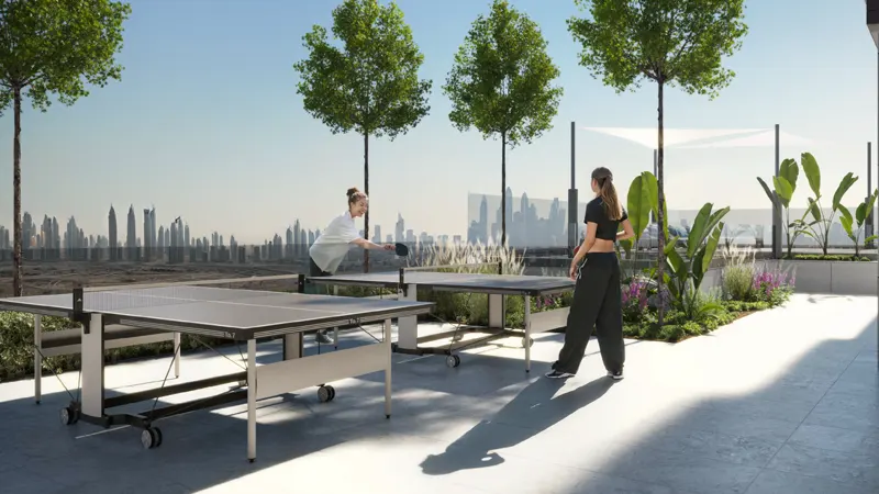 presents a vibrant community filled with parks, schools, and mosques. Its strategic location ensures easy access to major roads and neighboring areas, making it a convenient choice for professionals and families alike. With shopping centers, healthcare facilities, and recreational attractions just minutes away, residents can enjoy a well-rounded living experience without ever venturing far from home. Key Highlights: Choose from a meticulously curated selection of 1, 1.5, and 2-bedroom apartments, each boasting premium finishes, and panoramic views of the surrounding landscape. Nestled within the bustling city of JVT, Dubai, it offers residents easy access to major roads, neighboring communities, ensuring a seamless urban lifestyle. Stands as a symbol of architectural brilliance, soaring 26 storey high with a sleek and modern design that captivates the skyline of Jumeirah Village Triangle. Elevate your fitness routine with state-of-the-art gym and yoga facilities, where you can enjoy invigorating workouts amidst the serene backdrop of JVT's natural landscape. Enjoy the convenience of a 5-storey parking garage with direct access to the tower, ensuring hassle-free entry and exit for residents and their guests. Indulge in a world of relaxation and rejuvenation with a host of outdoor amenities, including an adult swimming pool with aqua fitness equipment, BBQ area and such.