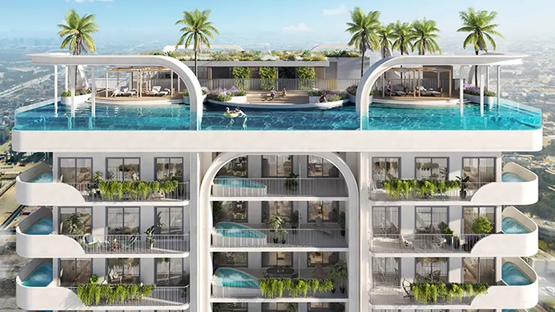feels both cosy and expansive. This rooftop oasis offers residents a variety of amenities and activities, making it a true lifestyle and leisure hub. The centerpiece of the rooftop is a gorgeous swimming pool, which is climate controlled and can be used year-round. Surrounded by a lovely deck area with sunbeds, shaded cabanas, and in-water loungers, the pool is the perfect place to relax and unwind. For those who enjoy staying active, the rooftop level also features a state-of-the-art gymnasium, a dedicated boxing and dance academy, and a fully-equipped gymnasium. These facilities provide residents with plenty of opportunities to stay fit and healthy without leaving the comfort of their homes. The façade also includes a variety of entertainment options, such as an outdoor cinema, a barbecue area, and a pizza bar, offering endless possibilities for relaxation and socializing. Key Highlights: Offers a range of meticulously crafted studios, 1 and 3-bedroom apartments, each designed to maximize space and natural light. The facade brings the serene alpine aesthetics to Dubailand, blending European elegance with contemporary urban design. Situated just off Sheikh Mohammed Bin Zayed Road in Dubailand, provides excellent accessibility and seamless connectivity. The building’s distinctive British-style architecture features striking geometric shapes, feature arches, and vertical elements inspired by snow melting on alpine peaks. Every apartment is designed with high-quality materials and finishes, offering contemporary interiors that evoke the coziness and calm ambience. Select apartments come with private plunge pools, allowing residents to enjoy a refreshing dip in the privacy of their own homes. The expansive rooftop terrace features a climate-controlled swimming pool, an outdoor cinema, and multiple leisure and dining options, for relaxation and entertainment.