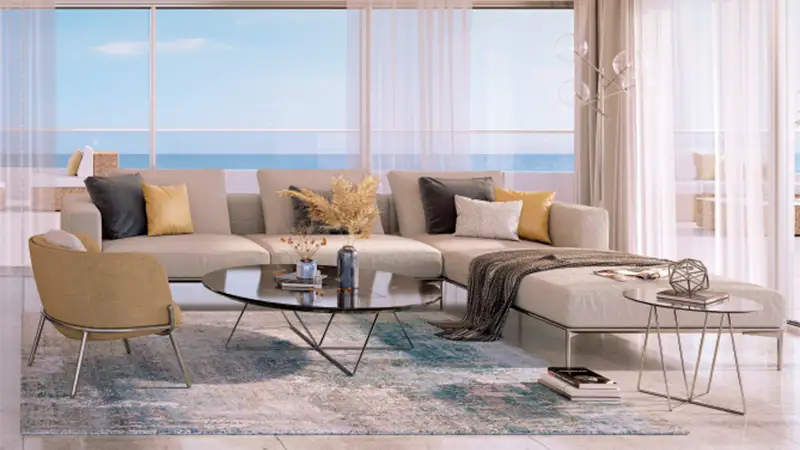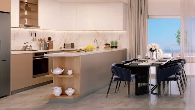 strict linear shapes, nestled amid the Arabian Gulf’s azure embrace. As soon as you approach its polished marble lobby via soaring windows which span the horizon, you know you are about in a place that is not only built to live but for rejuvenation. The façade extends an invitation to plunge into the world, where minimalist elegance meets the vitality of vibrant island life. Strategically located in the center of the Yas Island, which is an unbeatable location and puts you next to the crystal clear beachfront, a mesmerizing 3-km promenade, and a list of restaurants and entertainment destinations. Whatever your desire, ranging between getting the rush of Ferrari World, being spellbound by Warner Bros. World, to swanky atmospheres of Yas Marina and Yas Mall; it is all within convenient proximity. Easy access to Sheikh Khalifa Bin Zayed Street completes the image of this quiet waterfront place connecting to the Abu Dhabi and the rest of the world in a blink. Experience the minimalism between the lines, where the architecture is masterpiece. Designed by the leading experts, the architecture consists of the elegant linear layers which are able to reflect the light, its colour looping with references to the relaxing colours of the sea beach and the nature. Large windows with floor-to-ceiling glass and minimalistic frames invite rays of sun to enter the interior, however, the distinction between the nature and sea combines a pleasant environment. Visit the palatial front lobby surrounded by marble pillars and arriving at the scene and ambiance of discreet luxury introduces you to the architectural story running through the structure. Once you enter the unit you get a touch of recalibrated modern comfort through the interior design. The colour scheme is the unification of soft greys, and pastel hues to complete spaces that are clean and tasteful at the same time. Spacious living areas and bedrooms carry high calibre