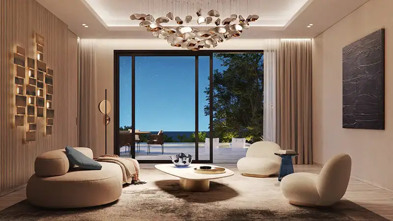 yet connected lifestyle. Each home is a masterpiece of modern design, offering expansive living spaces flooded with natural light. The interiors feature clean lines, premium finishes, and thoughtful layouts that prioritize both comfort and elegance. Whether it’s a grand hall, a serene reflection pool, or a state-of-the-art supercar garage, every element of these homes has been designed to elevate your living experience. The façade offers more than just luxurious residences; it promises a complete lifestyle upgrade. Residents enjoy access to a wealth of amenities, including private beach access, playgrounds, and a clubhouse featuring a gym, spa, and swimming pool. For those who love outdoor activities, the development is surrounded by pedestrian-friendly paths and cycling tracks, ensuring a healthy and active lifestyle.