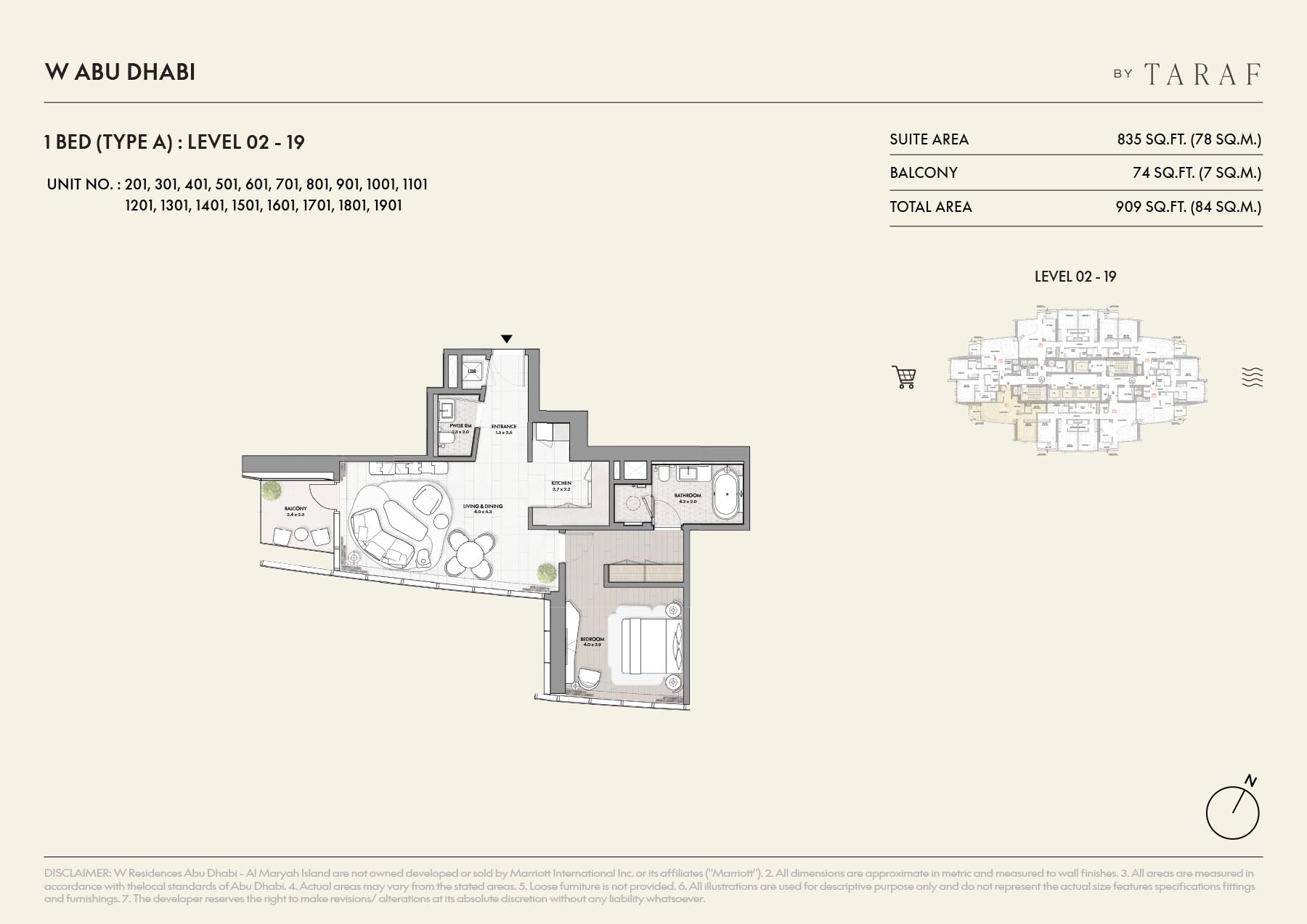 unwinding by the pool or enjoying a gathering in one of the common areas, the atmosphere offers vibrancy and engagement. Wellness sanctuaries and recreational facilities provide spaces to relax and rejuvenate, offering residents a well-rounded experience of luxury living. The development’s focus on creating meaningful experiences ensures that every resident feels a sense of belonging and fulfillment in their everyday life. Residents are automatically enrolled in the Marriott Bonvoy program, granting them access to special perks, such as discounts at luxury hotels and unique experiences tailored just for them. Additional personalized services include everything from private air travel arrangements to in-home spa treatments, ensuring that every need is met with the utmost care and attention. This commitment to service excellence is what truly elevates the living experience above other luxury developments in the region. Key Highlights: The development features 177 meticulously designed 1, 2, 3, and 4-bedroom apartments, 4 bedroom duplex apartments & 5 bedroom penthouse that balance elegance with functionality. Situated on Al Maryah Island, offers stunning waterfront views and direct access to the Galleria Mall and Cleveland Clinic. Developed in collaboration with Marriott International, it embodies the chic, vibrant, and modern design elements synonymous with the W Hotels brand. The exterior design is inspired by traditional dhow boats, blending heritage with bold, modern architectural elements that stand out on Abu Dhabi’s skyline. Residents enjoy a resort-like experience with access to infinity pools, wellness centers, and exclusive lifestyle amenities within the development. As residents, owners are automatically enrolled in Marriott Bonvoy, offering exclusive perks such as discounted luxury hotel stays, room upgrades, and special experiences. A 24/7 concierge service ensures residents have access to personalized services, including valet parking, private air travel arrangements, and in-home spa treatments.