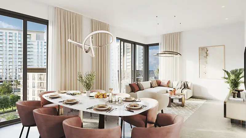 Each apartment is equipped with a private balcony, offering residents the perfect spot to unwind and take in the breathtaking views of the lagoon or the beautifully landscaped gardens. Here residents are treated to a wealth of amenities that are designed to enhance their quality of life and provide them with everything they need for a comfortable and convenient lifestyle. The development features a range of exclusive amenities, including swimming pools for both adults and children, a fully equipped gym, and a dedicated playground for children. The park offers walking and jogging trails, a basketball court, and ample green spaces, providing residents with the perfect environment to stay active and enjoy the outdoors. Key Highlights: Premium collection of meticulously designed 1, 2, and 3-bedroom apartments, each with private balconies and high-quality finishes. Nestled on the prestigious Corniche Road, offering seamless access to Maryam Island Boulevard and breathtaking views of Al Khan Lagoon. A harmonious blend of traditional and contemporary design, featuring a sleek facade with a warm beige and brown color palette. Enjoy a suite of exclusive amenities, including adult and children’s swimming pools, a fully equipped gym, and a dedicated children’s playground. Just steps away from an 800-meter seaside promenade, lined with gourmet dining options and boutique shopping outlets. A unique opportunity to own prime real estate in one of Sharjah’s most sought-after locations. Thoughtfully designed interiors that blend sophisticated design with the warmth of natural finishes, creating a luxurious living environment.