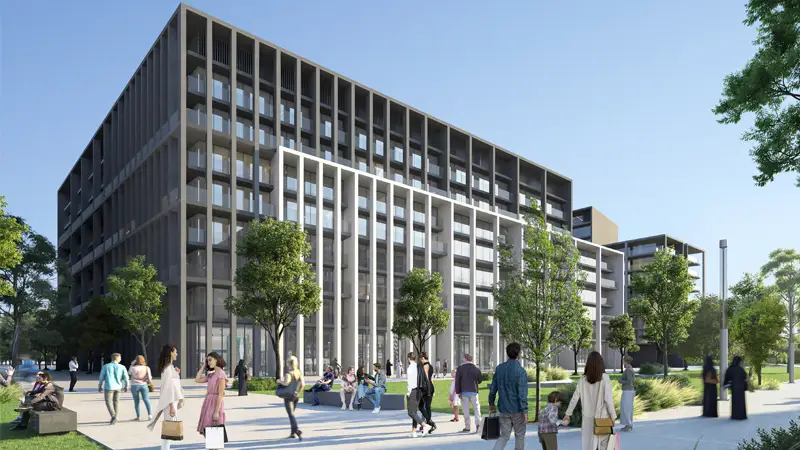 modern design and top quality features to create a unique lifestyle. This newly launched façade makes a great match for today's modern families: it offers small personal spaces, comfortable family-sized homes, and features everything needed to lead a busy and convenient life. The building shows how modernization works well with everyday use. Located in the renowned Aljada community, the façade leads right to where Sharjah's best entertainment, learning, and professional spaces are found. Folks living here have the privilege of using fitness center, swimming pool, and a massive 400,000 square feet