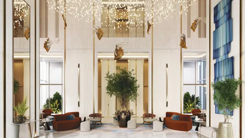 tells stories about tranquillity, and the sun plays around the shores, the façade comes out as a poetic synthesis of elegant lifestyle. It is not a mere residential tower, in fact it is a tranquil sculpture of glass and soul in a background of Dubai most visionary waterfront destination. This sanctuary sets beside the shores of Dubai Islands welcome you to get a touch of the essence of the marine elegance, with modern creativity and eternal tranquillity. A lifestyle that is not only created to reside in, but created also to those that want to make even the reality of everyday life into something very special. Set on the famous Dubai Islands and immersed in the beat of the beachside life, providing with an opportunity of adopting everything. Entailed in living alongside the great pace of the city without even touching the heartbeat. The backdrop can hardly be described as less than spectacular; 86 plush resorts, 21 kilometre of white-sanded shoreline, 9 yacht marinas and 2 championship golf courses makes up a living masterpiece of coastal splendour. Residents will never be too far away to Dubai city most celebrated attractions, including the likes of Islands Marina, Deira Waterfront, Downtown Dubai, the Dubai Frame and the International Airport. All you need is a simple connection that makes finding, getting, and staying everything that you want easy. Your home though, will always be where you are. The façade is an architectural expression of coastal serenity more than a high-rise, where the architectural dream in compose by the ocean. All the features of its design have heard the poetry of the sea, the stream of silhouette merging with the horizon, glass rich use reproducing the flow of water and the positioning of every line and volume with calculated taste. The building emerges graciously along the coastline, which is built as a calm backdrop with all views pointing towards the limitlessness of the skies and the sea. The building is carved as much in sculpture as in emotion with every gesture of line, every breath forming a natural dialogue with nature and environment. Once you enter, you do notice a transition between outside outward glamour and the inside marvel. All the residences are completed as fully furnished homes using tailor designed furniture that exudes a touch of elegance in every fibre and lacquer. Bright open spaces have floor-to-ceiling windows which invite the outdoors in