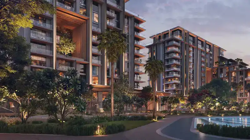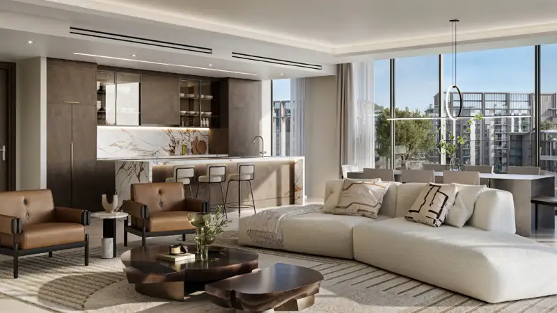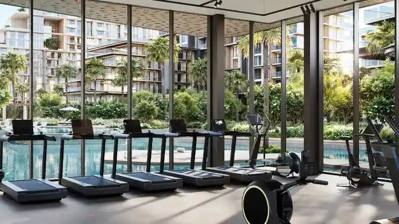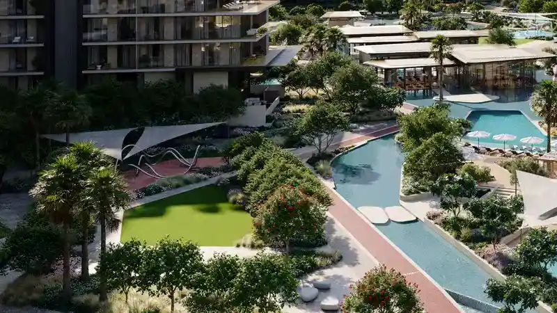 open, airy, and luxurious living conditions. Its high hotel type drop-off seems to be floating on a peaceful water body which gives you a feel of sophistication as you approach. When you enter the two-floor lobby full of natural light and green landscapes, there is a sense of broad openness taking the place of the usual city rush. This is not only a house but a resort-like life in a world of leisure and wellbeing. In this case wellness is incorporated in the character of a design. Window views are serene waters, and the aim of the cardio and weights is to enable energy and tranquilities to interweave. The yoga studio covered by a glass is a place of tranquillity- where reflection is joined with inspiration. Just go out to jogging paths which winds through natures and cycling paths which is around landscaped edges and refreshes the body and the soul. The padel and tennis courts encourage competitive moods whereas outdoor fitness stations are there to assist all stages of training. It is a place where vitality and nature clash without compromise. Key Highlights: Featuring 1 to 3-bedroom apartments, duplexes and penthouses oriented to face tranquil water features, offering a daily escape into serenity and fluid elegance. A grand floating drop-off and double-height, light-filled lobby set the tone for a lifestyle of effortless sophistication. Live steps away from Dubai’s most iconic destinations, yet within a community designed for peace and well-being. Architecture that breathes, thoughtfully designed mid-rise towers with panoramic glass, green vistas, and open-air terraces that redefine spatial luxury. Cardio and yoga studios, jogging trails, and outdoor fitness zones invite holistic health in a setting that inspires. Immersive kids' zones, water play areas, and themed indoor playrooms craft a joyful, family-friendly atmosphere. Enjoy stylish lounges, games rooms, and collaborative workspaces overlooking water, built to elevate every interaction.