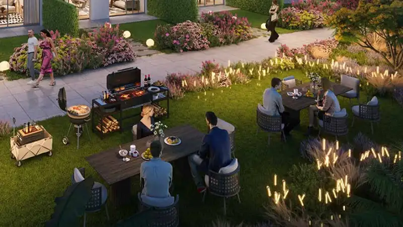 and wooden textures produces a tranquil environment that ties the earth with upper-class elegance. Each open kitchen arrangement seamlessly extends between the kitchen area and dining space for dining together with friends or enjoying calm time alone. Bedrooms exist as sacred places to welcome exhaustion from work since they include calming colours with generous space and luxurious materials at the end of a demanding day. The ultra-luxury nature inspired community development operates with two distinct elements named Green Vein and Water Vein that serve as its architectural foundation. The organic arteries develop the landscape beyond visual adjustments because they actively infuse energy into the surrounding environment. The community features the Green Vein as its main landscaped pathway which incorporates walking distances along with urban farming sites, yoga and meditation areas. The development offers people an opportunity to live according to nature and sustain themselves with self-grown food while spending time in nature. The Water Vein brings a sensory sanctuary to the community through its essential oil lakes and floating therapy pods and hydrotherapy pool facilities. These two aspects create an active wellness-focused environment that bases health principle on everyday existence. The bio-filtered swimming pools provide residents with a space to swim laps, while the Zen Spa center uses natural elements to renew and cure its visitors. Residents can combine swimming with outdoor exercise while rippling water flows beside them. Wellness exists as an integrated part of daily existence since it encompasses every healthcare need the habitant encounters in their routine. Key Highlights: Select from the nature-refined 1 & 2-bedroom apartments inspired by the nature’s flow, seamlessly integrated within the Green and Water Vein philosophy. Every cluster showcases a harmonious blend of coastal elegance and contemporary minimalism, evoking a timeless resort-like charm. Strategically placed within Dubai Investment Park to provide seamless access to Dubai Marina, Expo City, and major business and leisure destinations. Artfully curated interiors with a soft, serene aesthetic with natural texture, light tones, and layouts creating a calming sanctuaries like never before. Enjoy unforgettable evenings at the floating opera house, cinema on water, or tranquil therapy pods gliding on serene lakes. From essential oil lakes and bio-filtered pools to Zen spas and open-air yoga decks, wellness is intricately woven into the lifestyle. Amphitheatres, botanical gardens, adventure play zones, and learning-inspired parks turn every day into an enriching experience for all ages. A vibrant social hub offering co-working lounges, bowling alleys, fitness zones, and outdoor cinema decks to foster community and creativity.