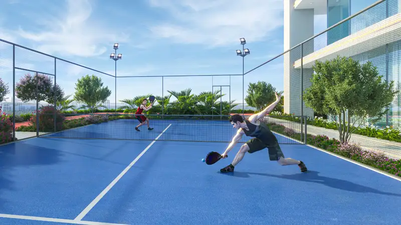 reflect a true dynamic approach to workspaces design and leisure amalgam. Whereas offered in shell and core format with layout flexibility including Standard to Executive, Premier and Prestige categories. The tenants can enjoy the freedom to define their spaces aligning functionality and personal aesthetics. As a new company, an SME or a global entity, you can be in style and efficiently work in their office spaces. Experience the elevated lifestyle that pushes the leisure boundaries to a new level with over 30 plus personally selected facilities for residents and 15 plus more to the office levels. The development realizes that leisure is not an afterthought- it is part of your lifestyle rhythm. Residents can start the day with sunrise yoga or Zumba sessions, take a refreshing dip in the swimming pool or get their heart rates up in the indoor and outdoor gym, equipped with modern machines. Every level of player will enjoy basketball and badminton courts, cricket pitch, and padel tennis courts, which provide recreation to athletes as well as families. The indoor movie theatre will deliver all the immersive fun, and games room and podcast studio will provide a sense of creativity to relax. Key Highlights: Convertible fully furnished studios, 1, 2 & 3-bedroom apartments featuring exclusive smart flex layouts in high-end design with multipurpose spaces. Iconic 47-storey mixed-use tower blending modern office spaces and luxury convertible residences within one visionary vertical development. Dual-Zone design featuring separate entrances, lobbies, and lifts for residences and offices, ensuring privacy and functional distinction. Strategically located in a high-potential growth corridor with strong connectivity to Dubai’s commercial, residential, and entertainment hubs. 30+ Lifestyle amenities including infinity pool, yoga zones, cinema, sports courts, games room, podcast studio, and more for an elevated residential experience. 15+ Exclusive business amenities such as a business centre, café, and meeting lounges to support productivity and client engagement on office floors. Core & À La Carte Services ranging from concierge, lobby coffee machines, and WiFi to optional valet, laundry, and personal trainers, enhancing convenience.