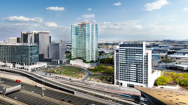 real estate developer promises a lifestyle of luxury and convenience. With two basement levels dedicated to parking, residents can enjoy seamless access to their vehicles. Situated within the 6.5 million square meter Downtown Area of Jebel Ali, it offers more than just a home; it provides a gateway to a vibrant community. The neighborhood, characterized by a blend of residential and commercial buildings along Sheikh Zayed Road, features parks, plazas, and shaded sidewalks. With Expo City Dubai just kilometers away, residents will have easy access to world-class exhibitions and entertainment venues. As Downtown Jebel Ali continues to evolve, the luxury design tall façade remains at the forefront of innovation, offering residents not just a place to live, but a lifestyle to cherish. The allure of the development extends beyond its architectural marvels. Residents are treated to a wealth of amenities designed to elevate their everyday experiences. From a spacious pool deck and modern fitness center to charming courtyards in the lobby, every aspect is crafted to provide residents with a tranquil retreat from the hustle and bustle of city life. Private balconies in all units offer stunning views of the surrounding port and neighborhood, while nature-connected living principles ensure a harmonious balance of wellness and privacy.