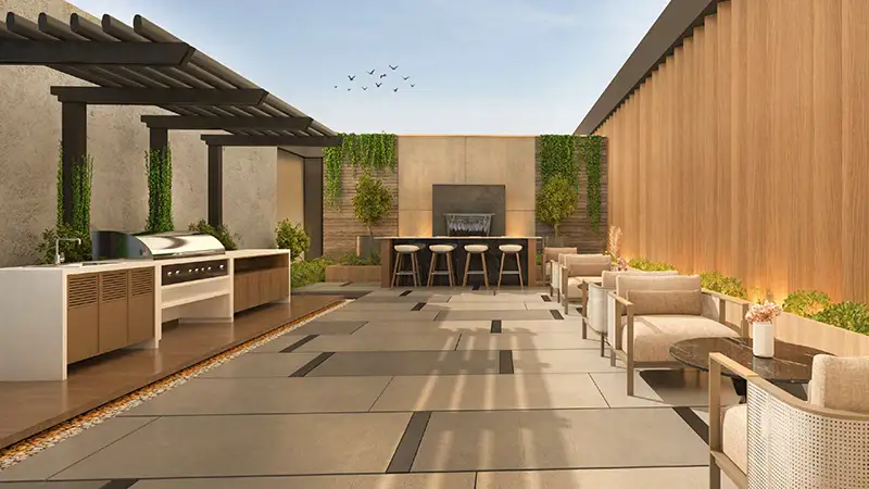 and lush landscaping, creating a welcoming aura of elegance. The imposing double-height designer lobby serves as a majestic focal point, with coffered ceilings, wood rafters, and artistic lighting creating an enchanting ambiance. Elevating the urban lifestyle, the façade introduces a plethora of premium amenities spread across 20,000 sq. ft. Residents can immerse themselves in a temperature-controlled pool, relax in private lounges, or enjoy cinematic evenings in the state-of-the-art home theatre. The lush rooftop garden with its barbecue area and cascading water features ensures moments of relaxation and socialization. Key Highlights: A stunning 9-storey modern façade featuring louvres, extended fins, and cascading water features, designed to make an iconic statement in Arjan, Dubai. Thoughtfully designed 1, 2, and 3-bedroom apartments with expansive layouts, natural light, and refined interiors that exude sophistication. Ideally located in Arjan, with easy access to Sheikh Mohammed Bin Zayed Road and nearby landmarks like Dubai Miracle Garden and Mall of the Emirates. Over 25 world-class amenities spanning 20,000 sq. ft., including a rooftop barbecue area, home theatre, and temperature-controlled swimming pool. A majestic entrance with coffered ceilings, artistic lighting, and wood rafters, offering a hotel-like ambiance of grandeur and elegance. Select apartments feature private plunge pools and terraces, creating an oasis of tranquillity and exclusivity. A dedicated kids’ play area, baby care center with round-the-clock supervision, and family-friendly communal spaces ensure a safe and nurturing environment.