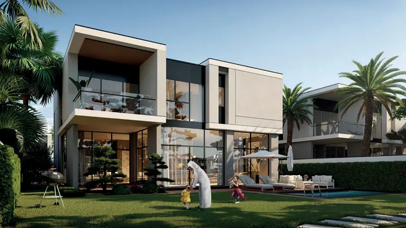 material and have been carefully selected and crafted to create exceptional finishes and experience that makes you feel comfortable at home. Every villa at this development is curated with clean elegant lines, simplicity and premium finishing to offer timeless modernity.Made available with attractive and flexible payment plan options, so you can have your dream home without facing any major inconvenience. Key Highlights: Residential development with a choice of 4 & 5-bedroom villas Easy and flexible payment plan options Landscape area in front and side of the villa Surrounded by tranquil and serene environment Development with lavish and premium fittings Large shaded balconies area overlooking garden and pool